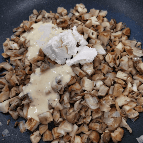 Then add cream cheese and mayonnaise. Reduce the heat and stir.
