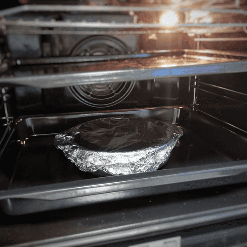 Cover with foil and place in a preheated oven at 150 degrees for 10-15 minutes.