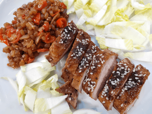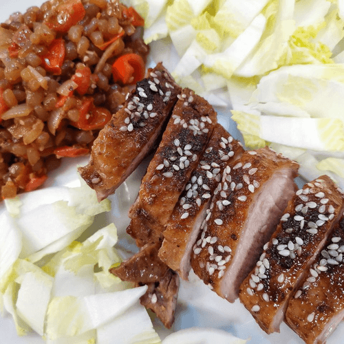 Duck breast with shirataki rice