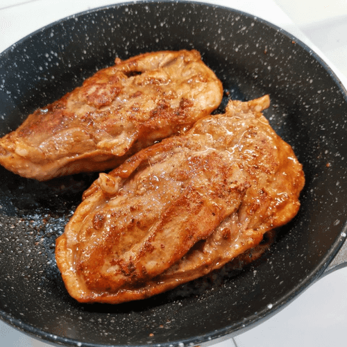 Generously grease the breast on both sides and place it skin side up in a hot skillet.