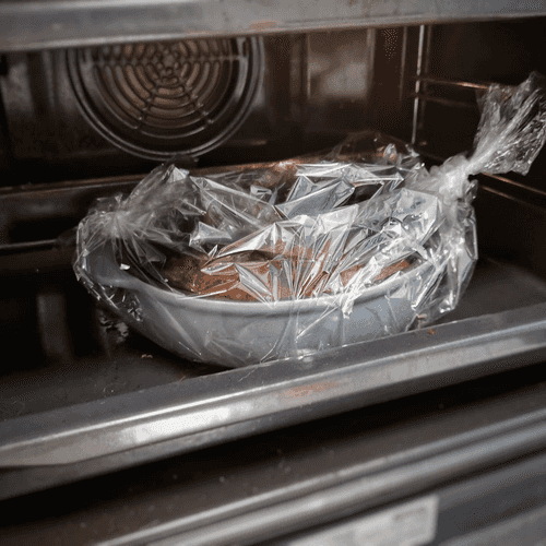 Pack the duck in a baking sleeve and send it to the oven for 25 minutes at 180 degrees.