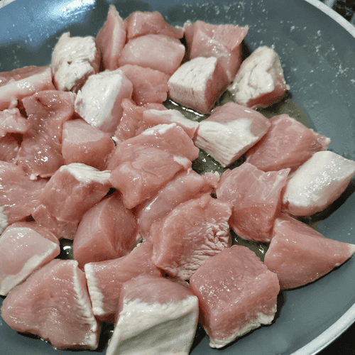 Melt butter in a pan and add diced turkey.
