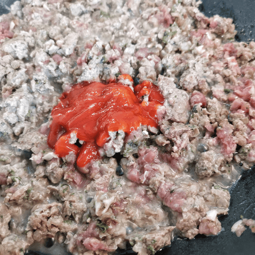 Add tomato sauce. Stir.