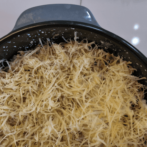 The delicious shepherd's keto pie is a modern interpretation of the traditional shepherd's pie, adapted for those on a low-carb diet. Instead of mashed potatoes, it uses a creamy cauliflower puree enriched with cream, cheese, and nutmeg. The base of the dish is juicy ground beef highlighted by the aroma of sautéed onions and tomato sauce. A delicate cheesy topping is baked to a golden crust, creating a harmony of textures. The pie is rich, hearty, and perfect for cozy family dinners. Its gentle flavor is complemented by a creamy structure, while the appetizing aroma fills the kitchen with warmth and comfort. An excellent option for those who want to enjoy classic comfort food without excess carbs.