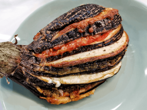 Whole baked eggplant parmigiana