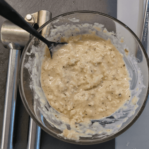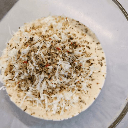 Combine cheese, mayonnaise, and Italian herbs in a deep bowl.
