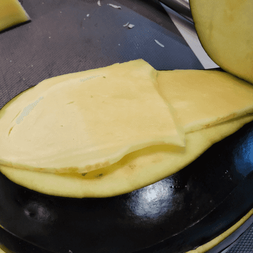 Place a couple of slices of suluguni cheese in the first compartment.
