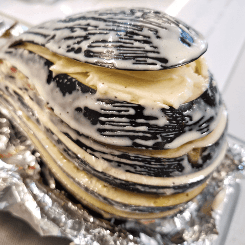 Whole baked eggplant parmigiano is a gastronomic masterpiece that combines traditional Italian notes with a creative approach. This dish transports us to sunny Tuscany, where parmesan cheese and pesto sauce create a magical flavor combination. The baked eggplant becomes tender, infused with the aromas of garlic, cherry tomatoes, and Italian herbs. Sulguni adds textural depth while the pesto sauce brings a zesty freshness. The dish is perfect as a standalone treat or as a side for a light dinner. It can be served with crispy baguette or a glass of white wine to highlight its complexity and harmony of flavors. It's ideal for cozy home evenings or as an exquisite accent on the festive table.