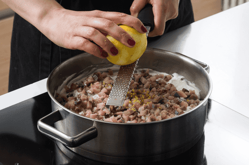 Grate the lemon zest on top and squeeze juice from half a lemon.