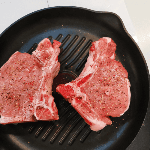 Brush the steaks with olive oil and place them on a hot grill pan.
