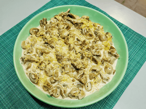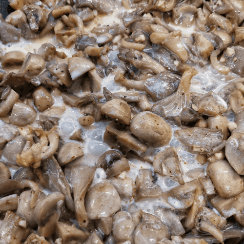 Fried mushrooms with cream and cheese is a delicate, velvety dish that combines earthy mushroom tones with the creamy softness of the cream and a subtle salty note from the cheese. The umami-rich mushrooms are first sautéed to a golden hue, releasing their rich aroma, and then enveloped in a creamy sauce texture. Garlic and peppers add a hint of spiciness, while parmesan completes the picture by adding depth of flavor. This dish can be a standalone meal or an exquisite side to meat or pasta. It evokes cozy evenings by the fireplace when one craves something warm and rich. The versatility of this recipe makes it perfect for both everyday dinners and special occasions.