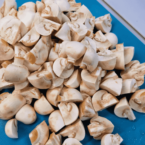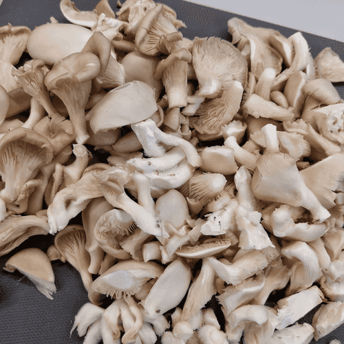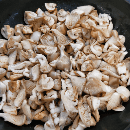 Separate the stems from the caps of the oyster mushrooms and cut the caps into two or three pieces.