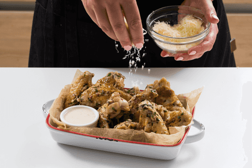 This is our favorite, which is not surprising. Butter and Parmesan have come together to make a perfect sauce that is impossible not to like. The wings are versatile, with a mild flavor, without any provocative accents - they go well with wine, beer, and some serious long drink. When you cook, pay attention to the consistency of the butter - it should not be softened, but completely melted, that is, liquid - here the stove or microwave will help you. Only then will it form a harmonious union with the cheese, and only then will the wings be able to soak up this sauce well. These wings are good served with Caesar sauce - you can make it yourself, or you can be content with some proven store-bought one.