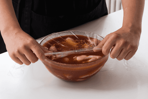 Cover the bowl with plastic wrap. Leave to marinate in the refrigerator for at least an hour.