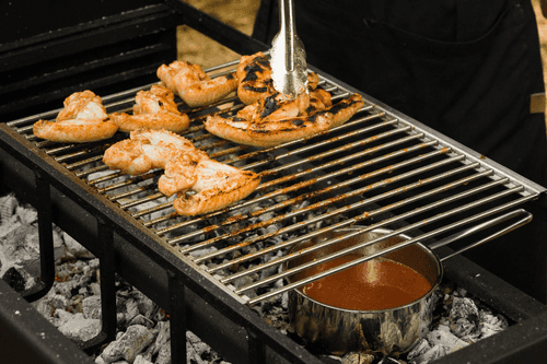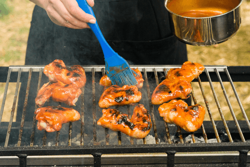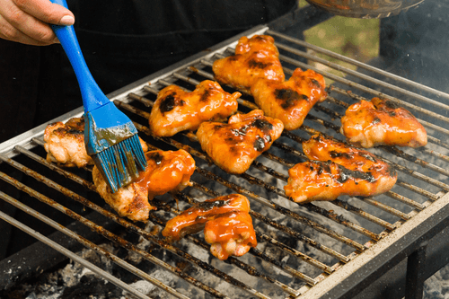 While the wings are frying, reduce the sauce directly on the coals to a thick sour cream consistency.