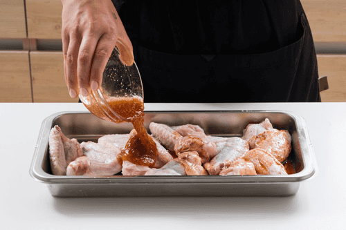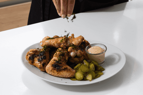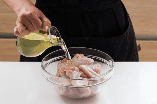 A brilliant invention. Usually a jar of brine is somewhere in the back of the refrigerator, waiting for its moment. Here, the brine played one of its main roles - it has long been known to everyone that it has a beneficial effect on the product that is to be fried. After meeting this brine, the chicken turns out more tender than tender, and most importantly - you can no longer salt it. We were lucky, for this recipe we used brine from Dijon cucumbers, and this sweet and sour taste after a couple of hours obviously decorated the dish. And here you also need bourbon, which adds an interesting piquancy, and the taste of the wings turned out to be multifaceted, more complex than you could imagine. Well, again, no one is stopping you from remembering about pure, unclouded bourbon during dinner.