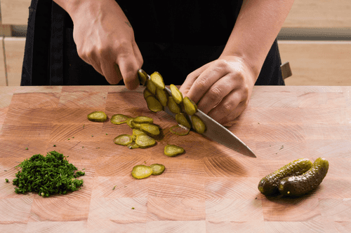 Sprinkle with finely chopped dill. Serve with pickles and ranch sauce.
