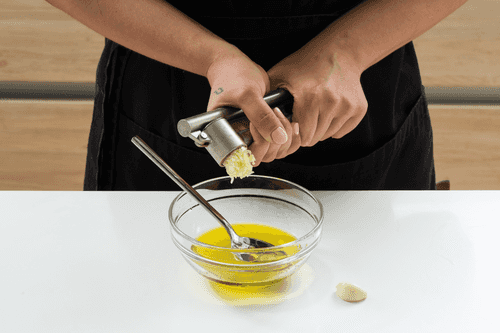 Press 3 cloves of garlic and add it to the marinade.