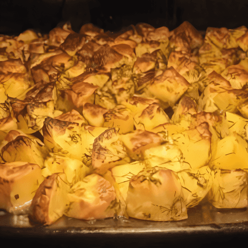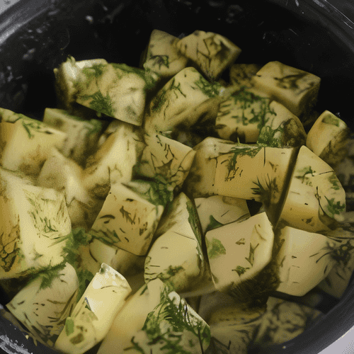 Rustic potatoes with dill is a simple yet incredibly tasty dish from the Russian countryside, where fresh and natural ingredients are the foundation of home cooking. Large pieces of potatoes baked to a golden crust are infused with the aroma of dill and vegetable oil, creating a unique flavor that combines softness inside and a crispy texture outside. This dish is perfect as a side for meat or fish and can also be enjoyed on its own, especially with sour cream or garlic sauce. Its simplicity makes it accessible to everyone, while its rich taste brings warmth and comfort of a village hearth.
