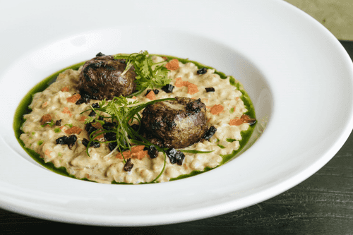 Perlotto with lamb meatballs and seasonal mushrooms