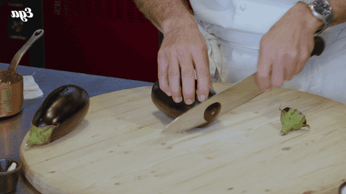 Cut the eggplants into random pieces.