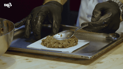 Place a tablespoon of stracciatella in the center of the cutlet and sprinkle with pine nuts.
