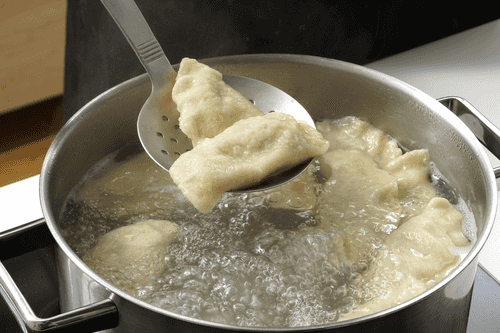 Boil water in a large pot and add salt. Immerse the dumplings, wait for them to float, and then cook for about 5 minutes.