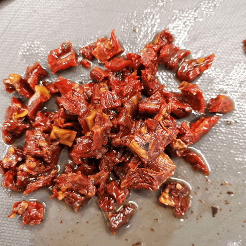 Chop the sun-dried tomatoes finely.