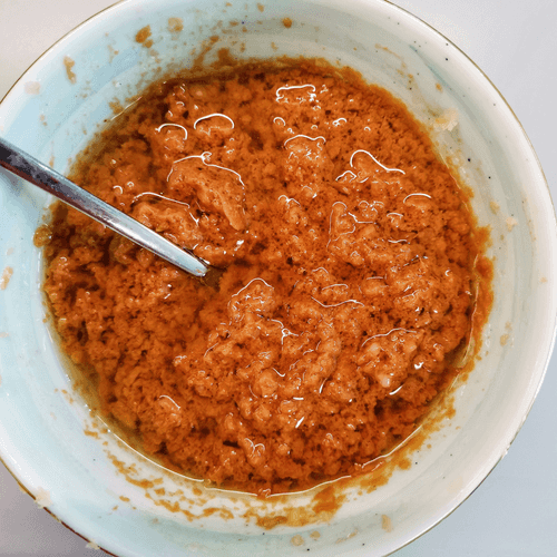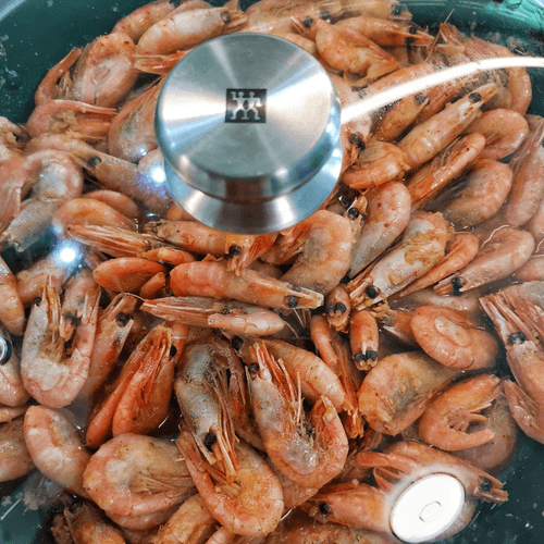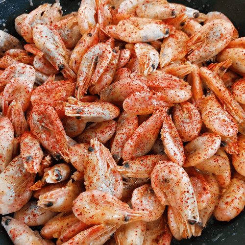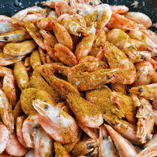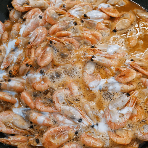 Place the shrimp on a dry hot skillet and season with the prepared sauce.