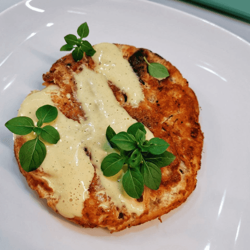 Fillet of wolf fish in egg batter is a tender and juicy dish where the fish is covered with a light and aromatic shell. Wolf fish is famous for its dense yet soft meat that pairs perfectly with the savory batter. The origins of this recipe lie in culinary creativity where classic breading techniques blend with modern ingredients. Almond flour adds a subtle nutty note while parmesan enhances the flavor richness. Fried to a golden crust, the fillet retains its juiciness inside, and the mayonnaise dressing along with fresh basil completes the flavor composition. This dish is suitable for both everyday dinners and special occasions, impressing with its refined taste and appetizing appearance.