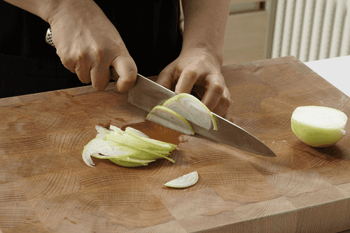 Slice the onion into thin half-rings.