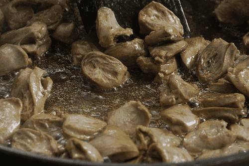 Fry the hearts in olive oil in a heavily heated pan for 3-4 minutes.