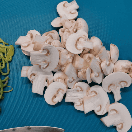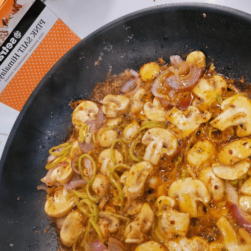 Salt the mushrooms. Fry on high heat for about 5 minutes, stirring occasionally. Add garlic a minute before it's done.