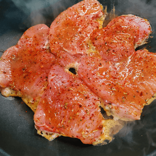 Season with ground chili and reduce heat to medium. Fry on both sides for 5 minutes until cooked.
