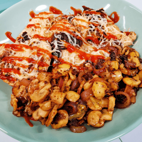 Turkey breast with spicy mushrooms is a gastronomic symphony of flavors that combines the tenderness of the bird with the spicy richness of spices and the piquant texture of mushrooms. The history of this dish is not tied to a specific cuisine but reflects modern culinary eclecticism that allows for experimentation with ingredients. Sriracha adds a fiery touch to the meat, while Italian herbs harmonize the flavor, creating a balance between the tenderness of turkey and the richness of mushrooms. Garlic adds depth to the aroma, and Parmesan completes the composition, turning the dish into a worthy masterpiece. It’s an ideal option for those looking to impress guests with an original combination of spices and textures. Served hot, it pairs perfectly with fresh vegetables or a light garnish that complements its flavor palette.