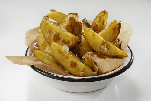 Put the potatoes in the oven for 30 minutes. Turn them on the baking sheet twice: after 15 minutes and then again after another 10 minutes.