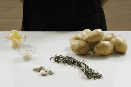 Before serving, remove and discard the garlic and rosemary, sprinkle the potatoes with coarse salt, and serve immediately.