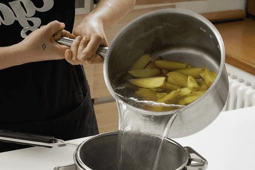 Drain the water, cover the pot with potatoes and return it to the stove on the lowest heat for 5 minutes.