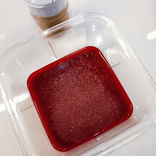 Pour pomegranate juice into a deep container.