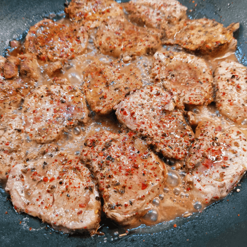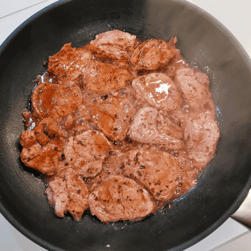 Place the medallions in a dry hot skillet. Add salt.