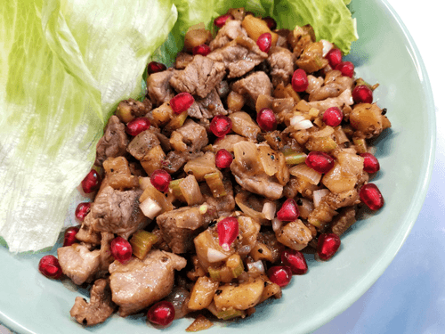The dish will be ready in 3 minutes. Serve it sprinkled with pomegranate.