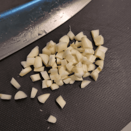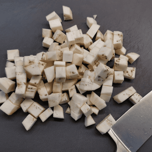 Heat both types of oil in a pan and add a pinch of coarse salt.