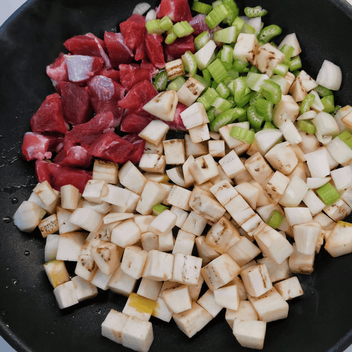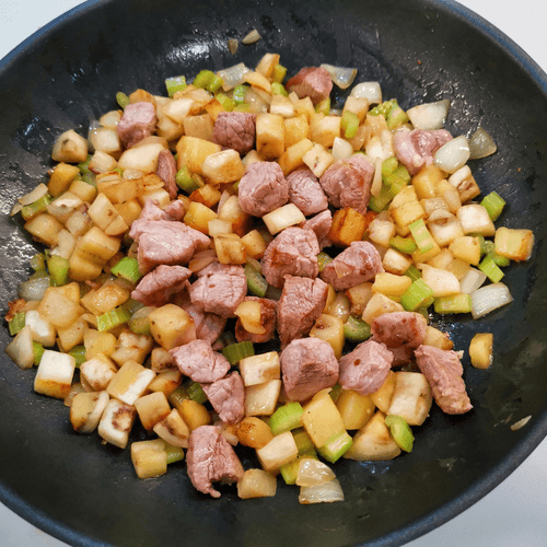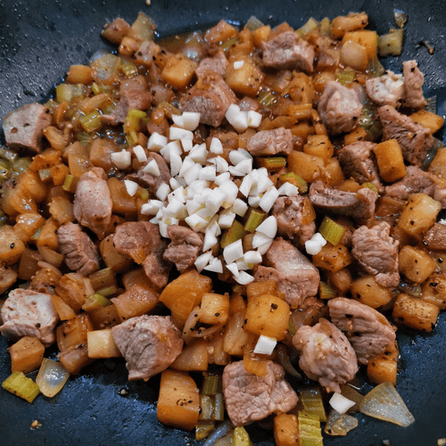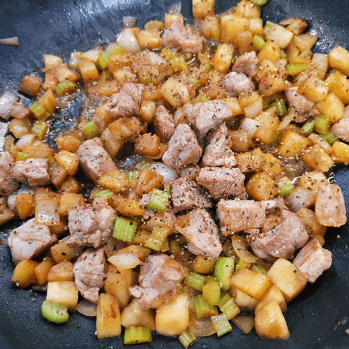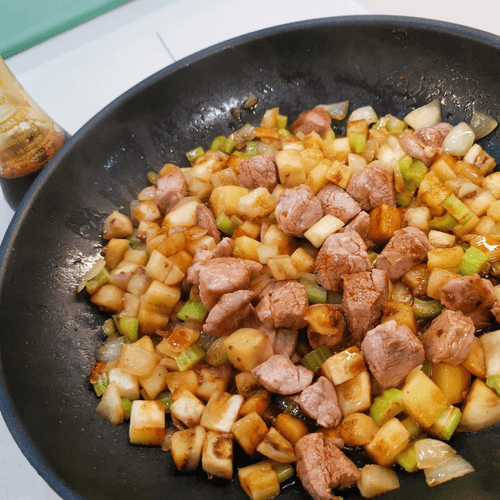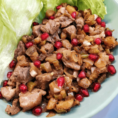 Azu with pork and vegetables is a dish infused with the aromas of Eastern spices and the rich flavor of juicy meat. Although traditionally made with beef, this author’s version with pork adds tenderness and softness to the texture. Vegetables like eggplant, celery, and onion bring balance to the taste, while the combination of olive and mustard oils gives the dish a rich and deep aroma. Soy sauce and a mix of ground peppers complement it with spicy notes, and the finishing touch—pomegranate seeds—adds a refreshing tang. The dish pairs perfectly with potato or rice garnishes and can be served both on weekdays and at festive tables. Each bite reflects a harmony of flavors created through careful preparation and thoughtful ingredient selection.