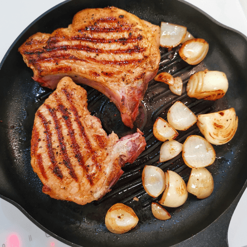 Свиная корейка, обжаренная с луком, — это блюдо с насыщенным ароматом и глубиной вкуса, в котором сочное мясо соединяется с карамелизованным луком и пряностями. Маринад из соевого соуса, оливкового масла и смеси перцев придаёт мясу тонкие восточные нотки, а сухая аджика добавляет пикантности. Это блюдо можно считать современной авторской интерпретацией традиционного жареного мяса, популярного в различных кухнях мира. Прожаренное на гриль-сковороде мясо приобретает аппетитный рисунок, а лук становится мягким и сладковатым. Свиная корейка идеально сочетается со свежими овощами, создавая баланс вкусов и текстур. Простота приготовления и богатый вкус делают это блюдо отличным вариантом как для повседневных ужинов, так и для особых случаев.