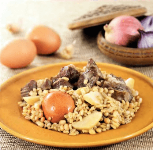 Cholent with beans and potatoes