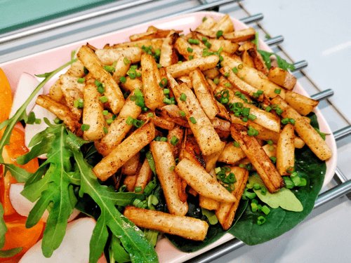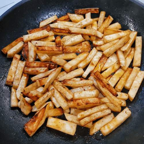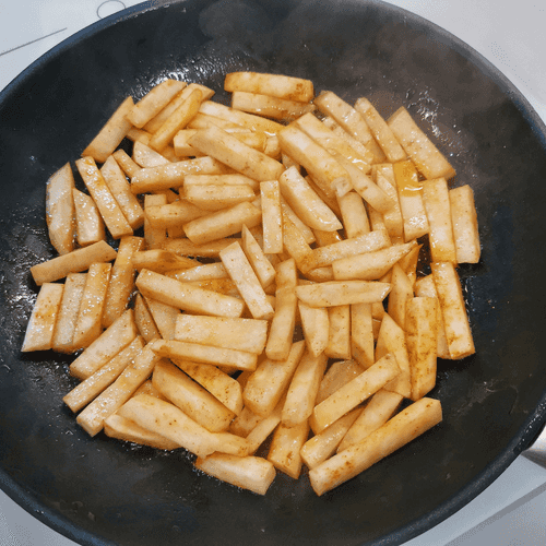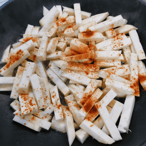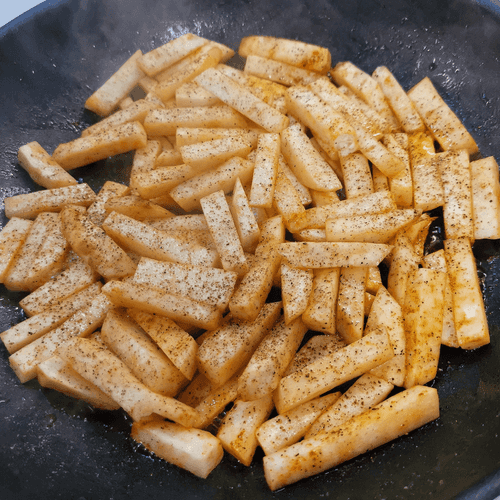 Fried celery root with paprika is a true discovery for lovers of unusual flavor combinations. Thanks to the mustard oil, it acquires a rich nutty hue, while lemon juice adds freshness and a slight tanginess. Paprika complements the composition with a warm, slightly smoky aroma that pairs perfectly with the caramelized crust of the root vegetable. This recipe could have emerged as an experiment in a chef's kitchen where traditional ingredients gain a new sound. The dish is perfect as a side for meat and fish dishes or as an independent snack, especially when paired with fresh herbs and yogurt sauce. Its rich flavor and simplicity of preparation make it an excellent choice for those looking to add culinary variety to their diet.