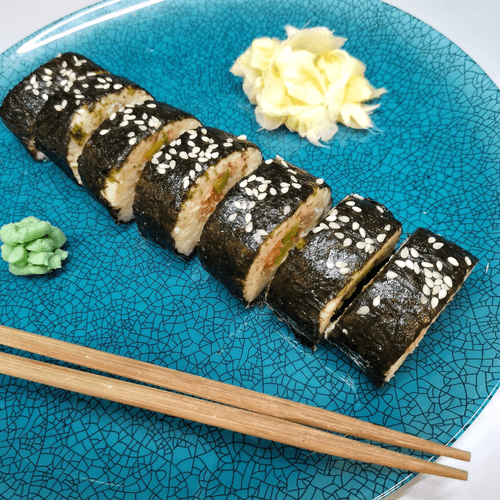 Cauliflower keto rolls with tuna are an exquisite combination of healthy ingredients and an original approach to traditional Japanese rolls. Cauliflower turned into a delicate puree replaces classic rice, creating a light and airy texture. Tender tuna, refreshing cucumber, and creamy avocado add depth of flavor, while nori sheets provide the familiar shape and a hint of the sea. A sprinkle of white sesame enhances the nutty undertone of the dish. These rolls are an ideal option for those on a low-carb diet who are not ready to give up gastronomic pleasures. They will adorn any table and offer enjoyment with their delicate yet rich flavor composition.