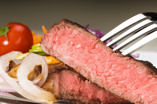 Boiled beef steak with onions