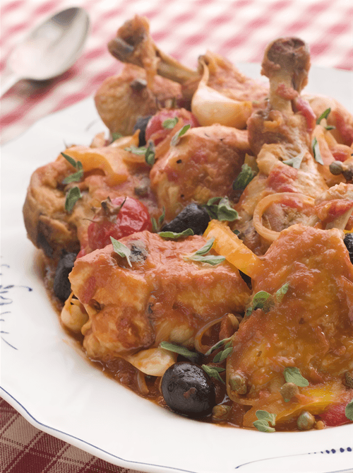 Chicken stewed with olives