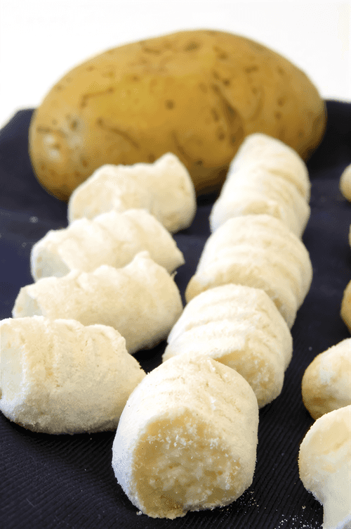 Use a spoon soaked in water to separate small pieces of potato dough and drop them into boiling salted water. Cook for 6-8 minutes.